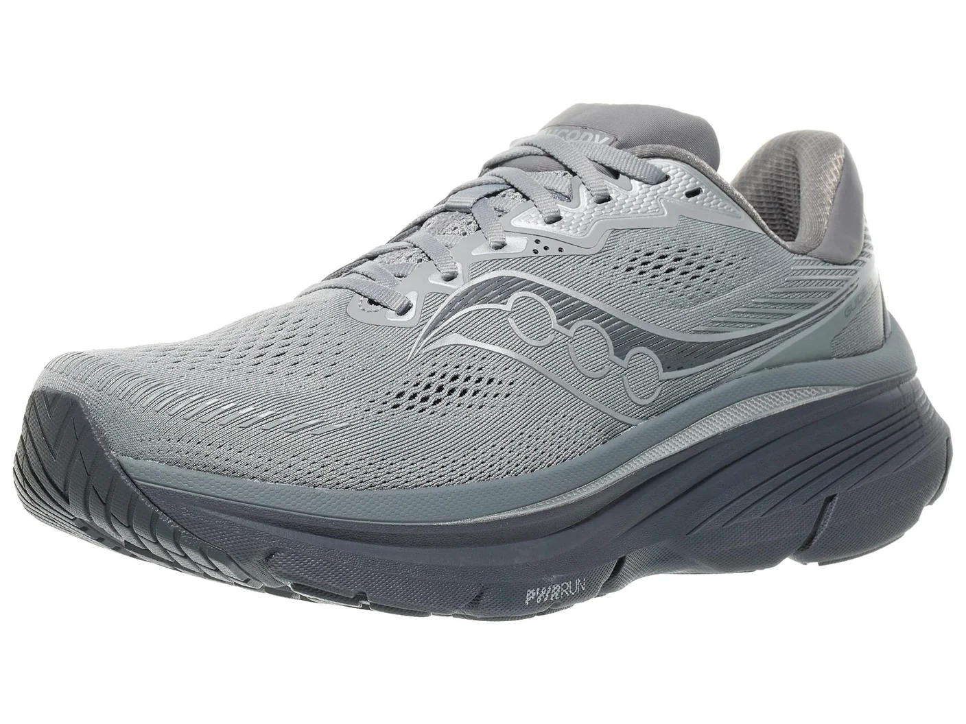 The midsole offers a full-length, hearty helping of Saucony’s PWRRUN EVA-based foam that delivers a maximally protective ride with an emphasis on softness. A PWRRUN+ sockliner adds even more comfort and cushioning underfoot to support all-day wear.